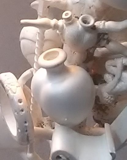 The original form was carved in blue wax, and cast in silver. I seem to be able to only find an image of it just after it was cast and still on its tree: